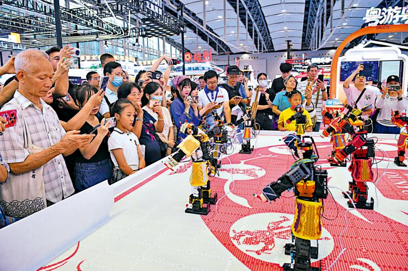 照片:9月13日,在2025年广东国际旅游业博览会上,机器人进行了英语歌曲和舞蹈。 \新华社