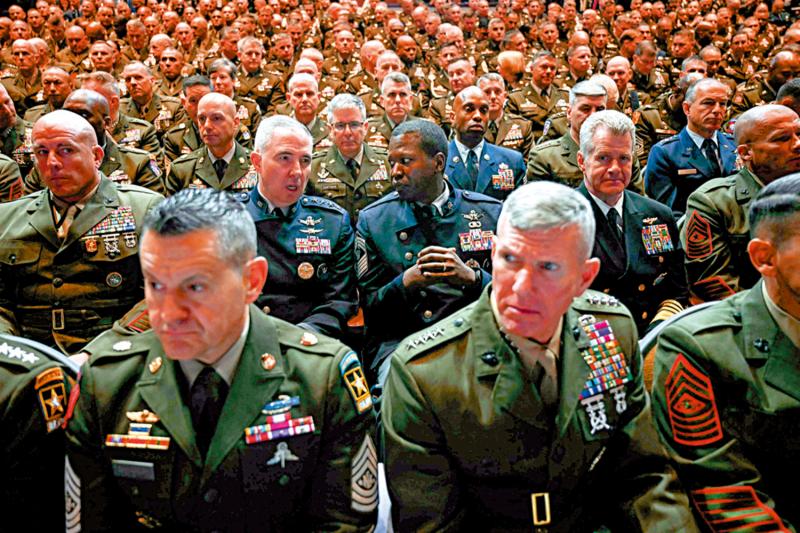 照片:数百-U。来自世界各地的军事将军于9月30日参加了弗吉尼亚州Quantico的会议。Hegess在讲话中说,国防部必须具有“适当的才能”和“适当的文化”。从事与战斗相关的职业的军事人员应按照男性标准进行身体健身审判,他们的分数应达到70%或以上。在外观上,海格斯宣布他将不再允许胡须和批评士兵和将军。赫格斯在近50分钟的演讲中教导:“我们必须为战争做准备,而不仅仅是为防守做准备。” “现在,我们为您提供了实时的时间; PPT简报和在线课程更少,更多的培训和拍摄时间。”他批评该计划“不同,公平与融合”(DEI),强调未来的晋升是“基于表现的。” Hegses说,“看到肥胖的将军和士兵”是疲倦,”完全不可接受。 “那天的社交媒体会议。“这完全是浪费金钱。”